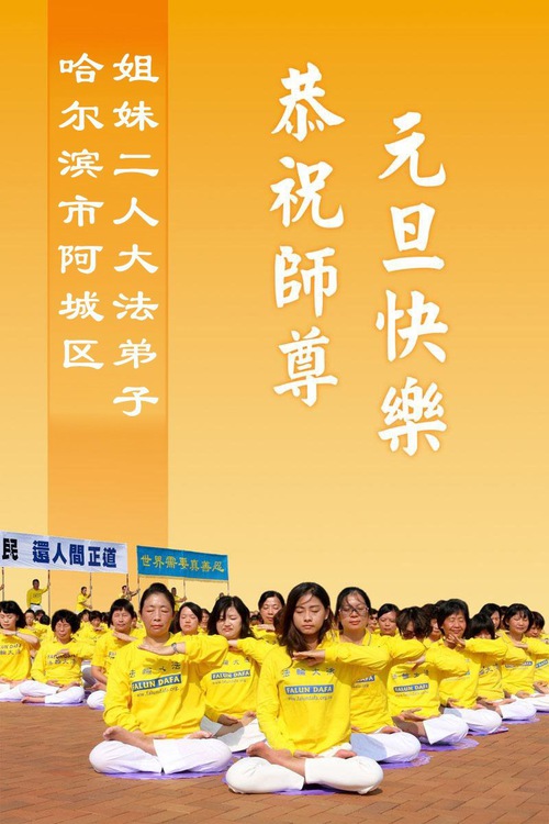 Практикувальники Фалунь Дафа з міста Харбіна бажають шановному Вчителю Лі Хунчжи щасливого Нового року (108 поздоровлень)